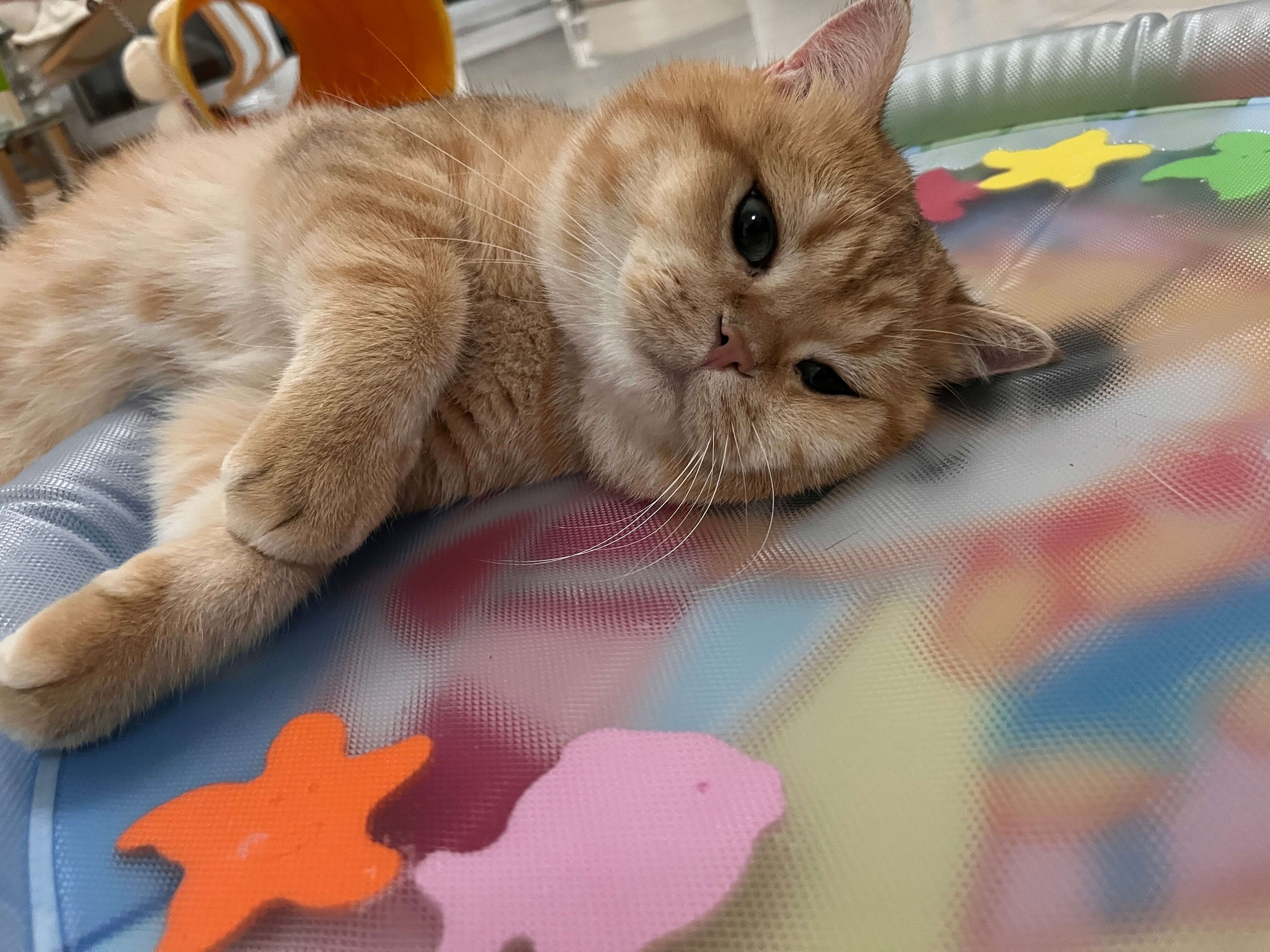 My cat absolutely loves this cooling pad! The floating toys keep her entertained.