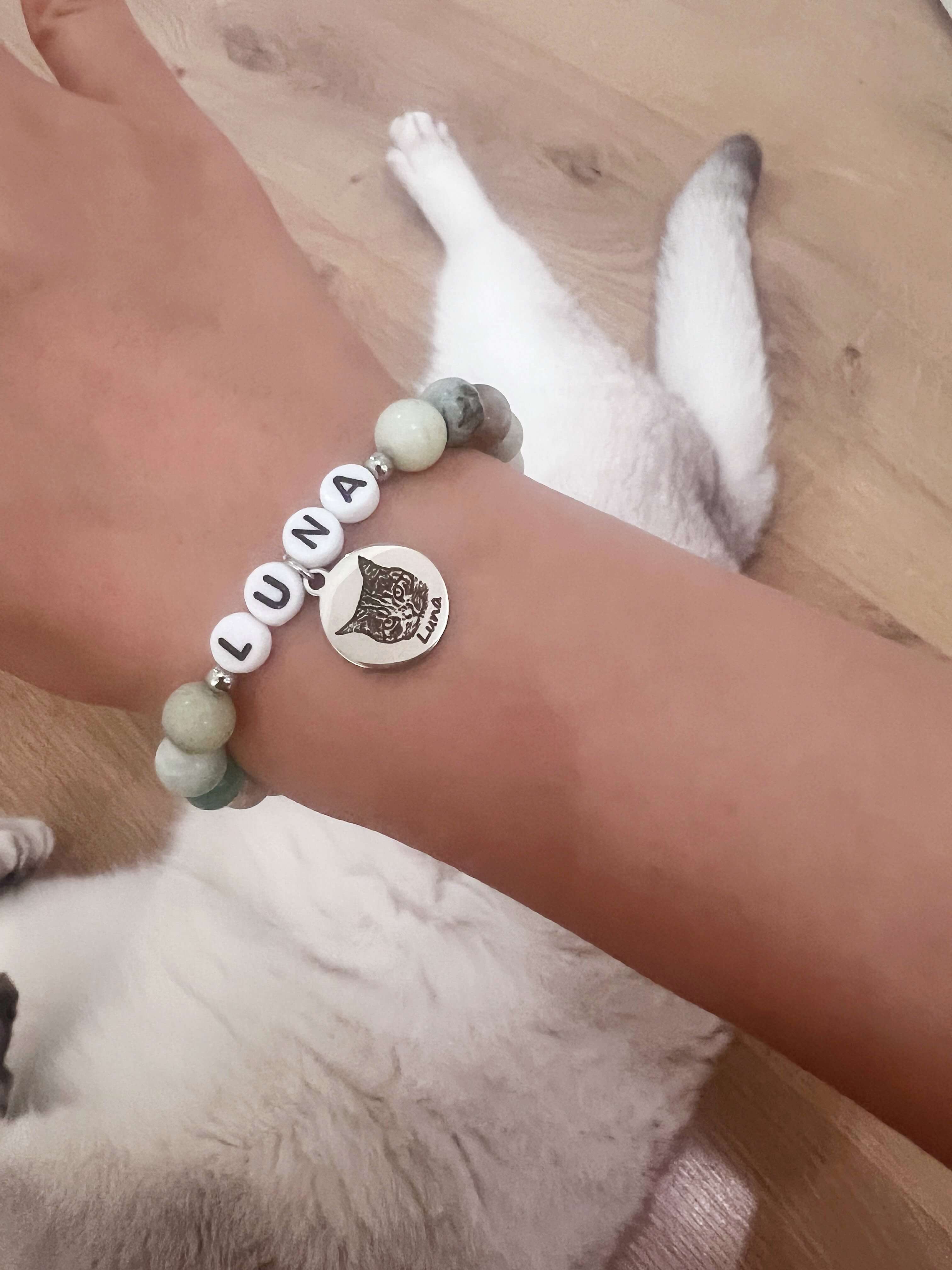 Chaque bracelet est soigneusement conçu pour refléter le charme et la personnalité de votre animal de compagnie — qu'il s'agisse des yeux curieux de votre chat ou de l'énergie ludique de votre chien, chaque détail est conçu avec soin.