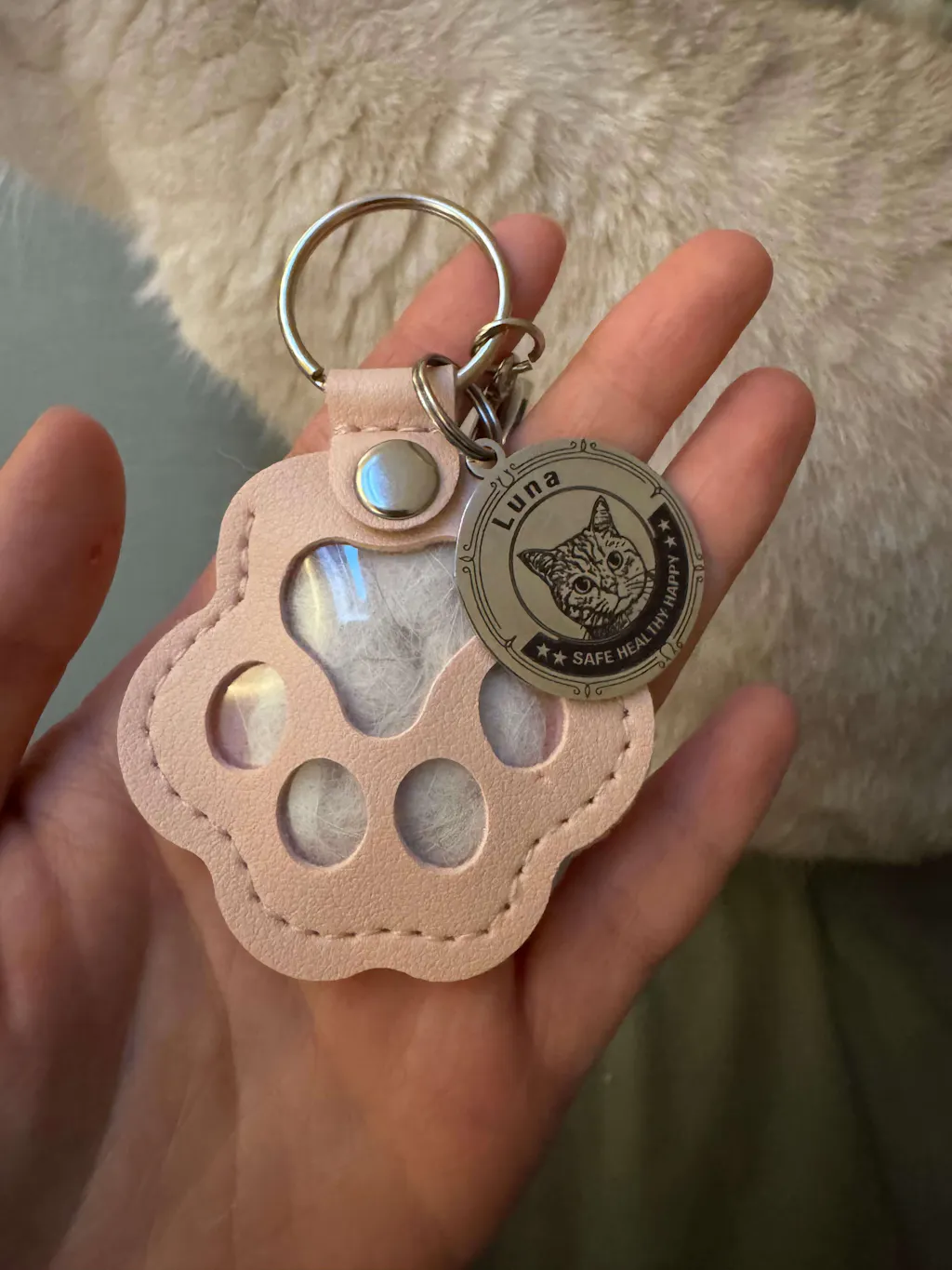 Some bonds never feel smallāeven when they fit in your hand. This Custom Pet Portrait Hair Keepsake Keychain lets you keep a little piece of your pet close every day. The paw-shaped design gently holds your petās fur inside, while the engraved portrait charm turns their face into a tiny keepsake you can carry anywhere.