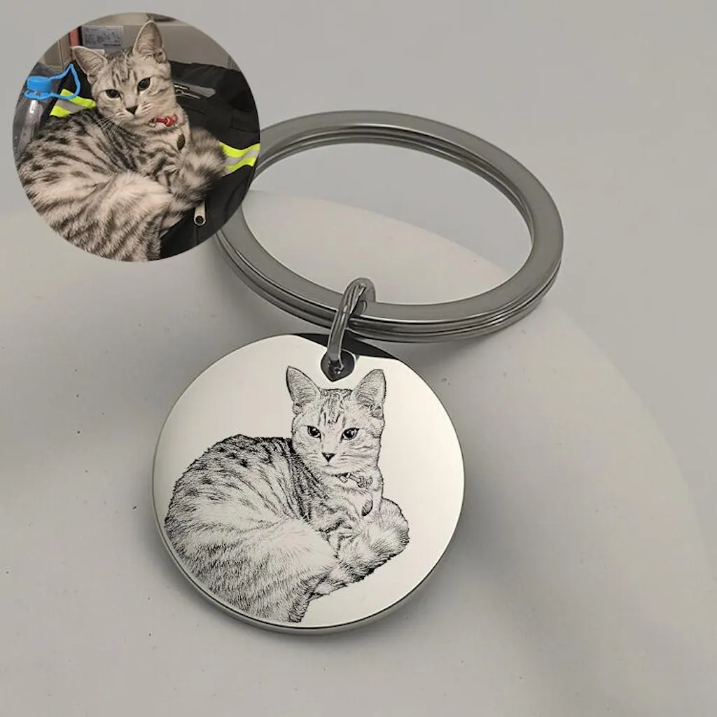 The Pet Face Keychain by Tailymemo isn't just functional—it’s a heartfelt tribute to the furry friend who brings joy to your life. Carefully crafted with precision, each keychain features a shallow engraving that captures your pet’s face in stunning, lifelike detail.